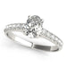 This elegant engagement ring features a 1.5 carat oval lab-grown diamond, gracefully set in a classic four-prong setting. The band is adorned with sparkling lab-grown diamonds that taper subtly toward the center, enhancing its brilliance. A unique cathedral-inspired gallery with a crisscross detail below the head adds a sophisticated architectural touch to this timeless piece.