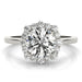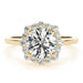 This dazzling ring features a brilliant 2 carat round lab-grown diamond at its center, encircled by a floral-inspired halo of sparkling accent stones. The elegant design rests on a smooth polished band, making it an exquisite piece for any occasion.