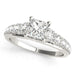 Make a bold yet graceful statement with this sophisticated engagement ring. A stunning 1.5 carat princess-cut center diamond commands attention, flanked by a row of round accent stones that continue down the split-shank band. The crossover gallery detail adds an elegant flourish, symbolizing unity and enduring love. This ring is perfect for the modern romantic who appreciates strong design and timeless sparkle.