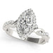 Elegant and eye-catching, this engagement ring features a breathtaking 1.5 carat marquise-cut lab-grown diamond at its center. The elongated shape adds a regal touch, while the surrounding halo of round diamonds intensifies the brilliance of the center stone. The band is adorned with twisted pavé-set diamonds, creating a graceful flow of sparkle and sophistication. A perfect blend of bold design and classic elegance, this ring is designed to turn heads.