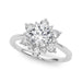 This enchanting engagement ring showcases a dazzling round center stone of approximately 1.5 carats. Surrounded by a sparkling halo of round and marquise-shaped lab-grown diamonds arranged in a radiant floral motif, the design exudes both romance and sophistication. The sleek and polished band completes the timeless elegance of this floral-inspired piece, perfect for someone who appreciates graceful brilliance.